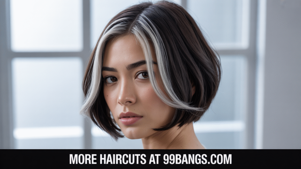 Remember the chunky highlights from the early 2000s? They’re back—but better. Think black or dark brown hair with bold silver streaks.